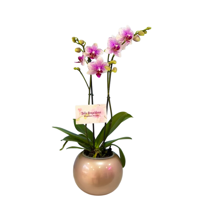 Orquidea alta dos tallos Rose Delicato con matera plastica decorativa(MP)